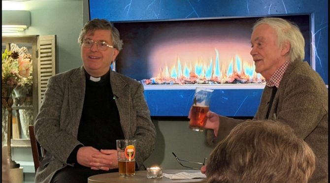 Wednesday 4th March marked the fifth anniversary of Annabel and John taking over the Red Lion, and saw Elphin Lloyd-Jones guide Revd Canon Jason St. John Nicolle through their pub’s second “Fireside Chat”.
